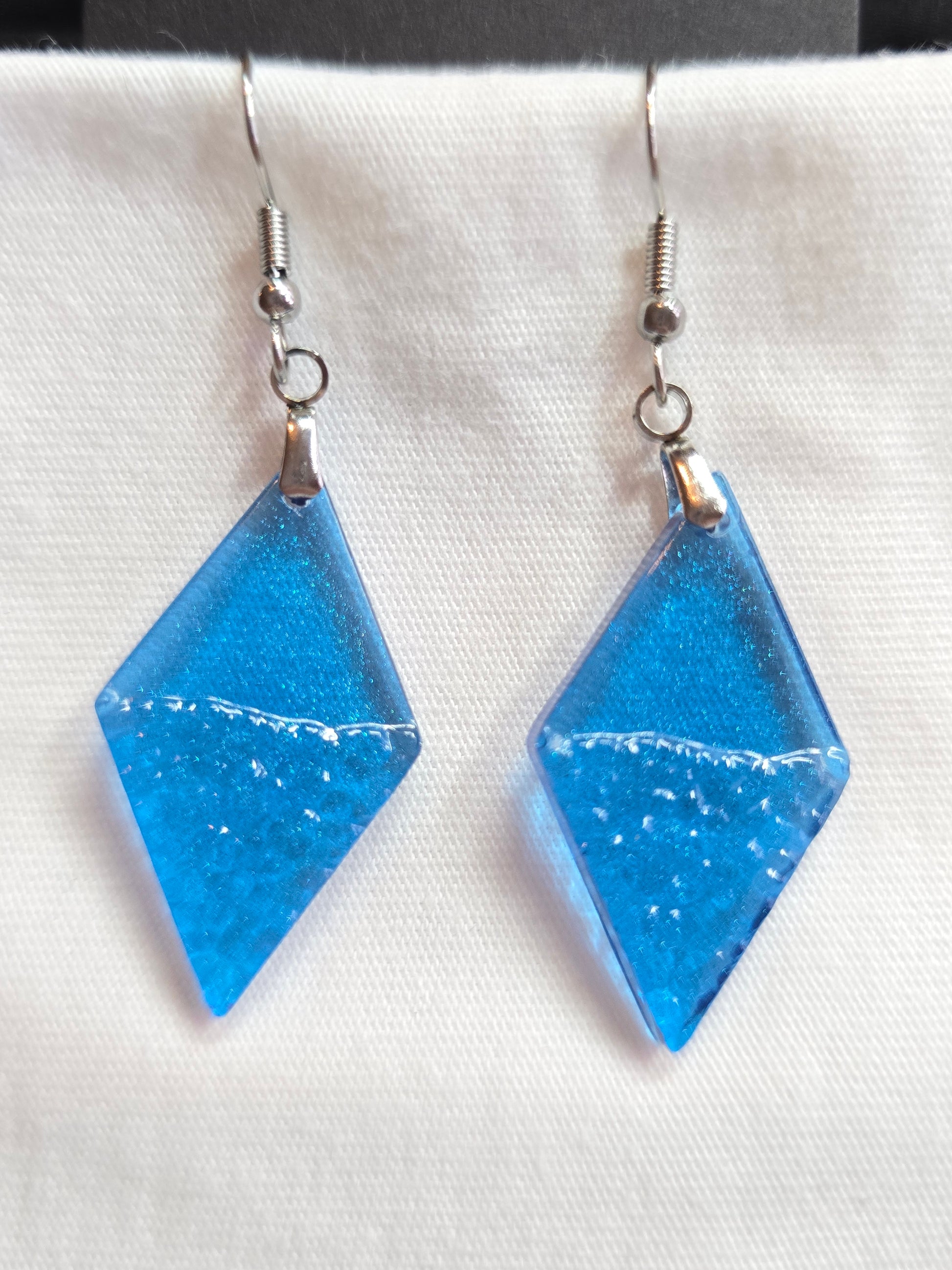 Glanzend blauwe oorbel met reliëf