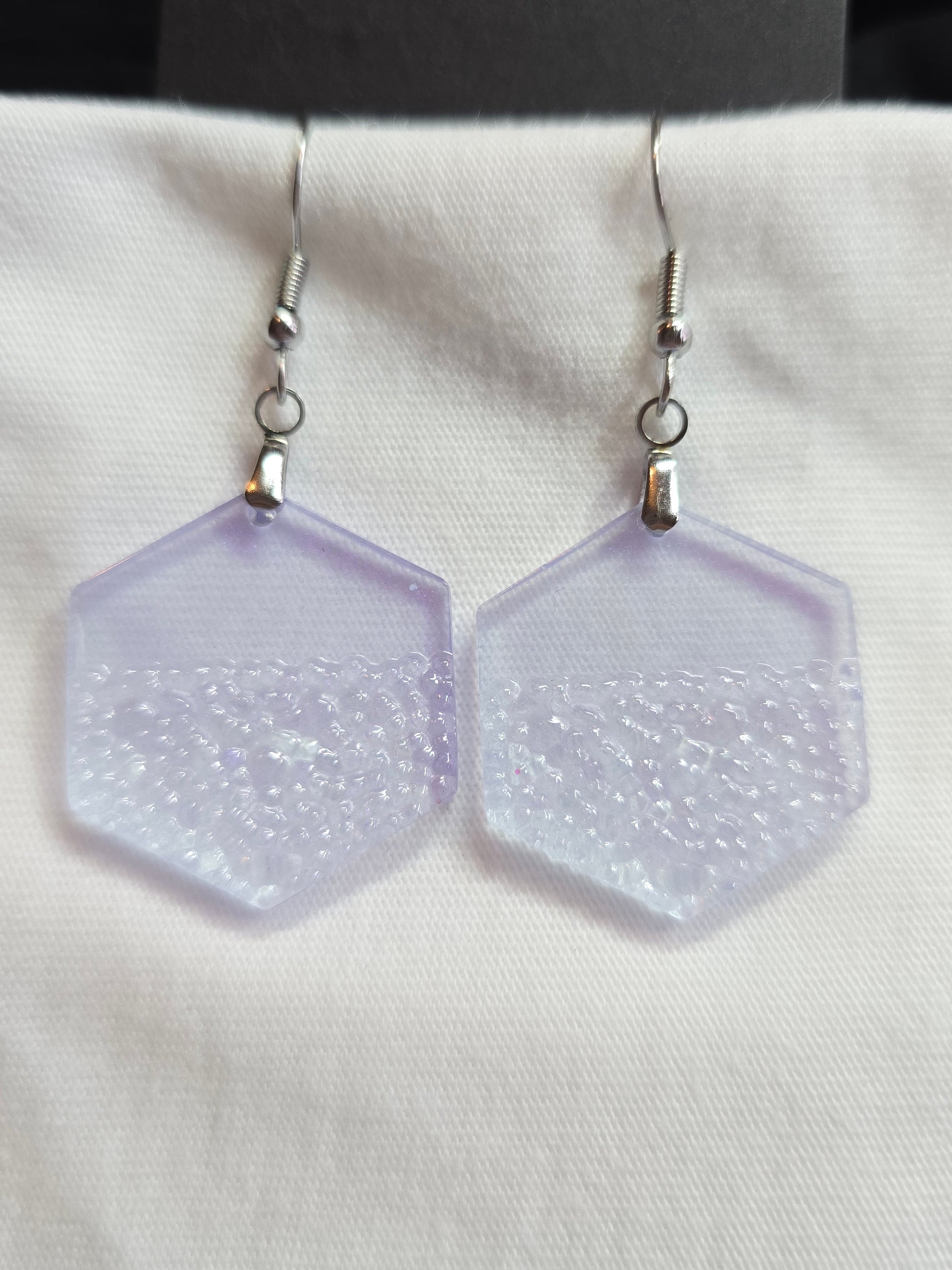 Transparante lila oorbel met reliëf