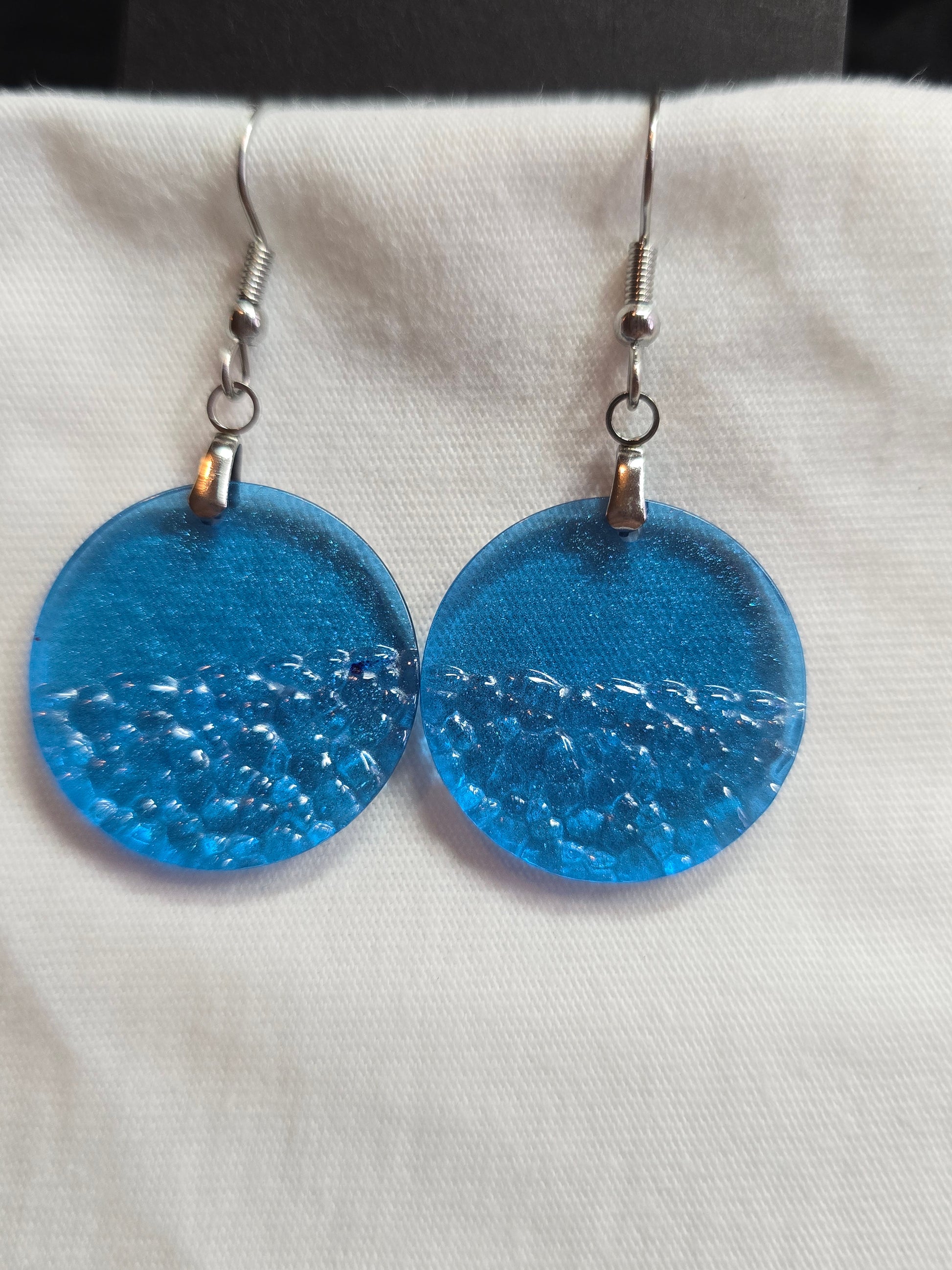 Glanzend blauwe oorbel met reliëf